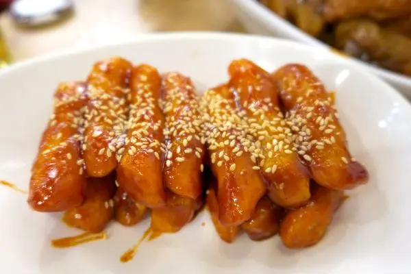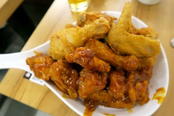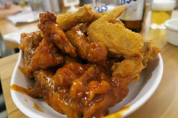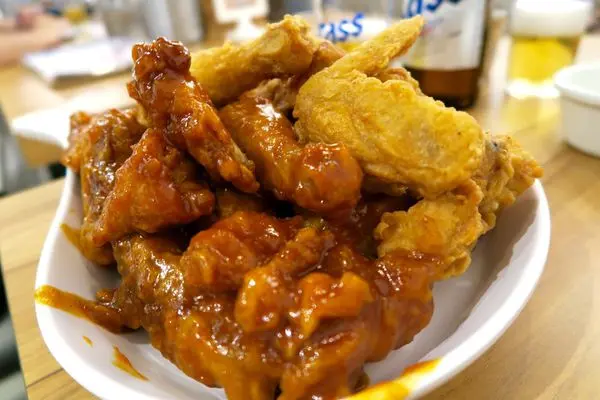 因為有裹上醬汁,所以洋釀的炸雞皮很不脆