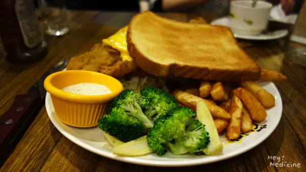 從這面可以看到炸魚真的非常澎派!!這條大大的炸魴魚完完全全的超出了三明治的範圍外啊,根本是兩人份的大小了。