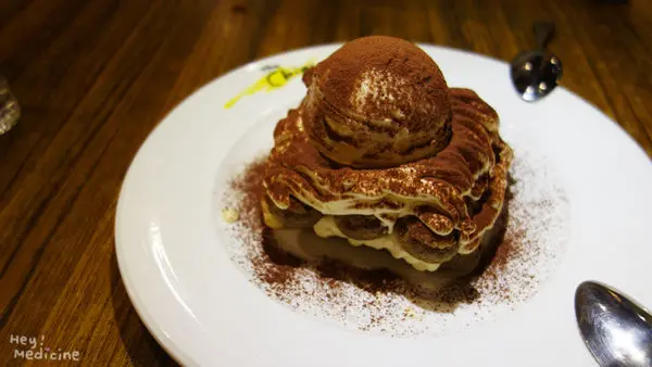 和前幾道菜一樣,提拉米蘇的分量也很大,上面還有一球巨大的香草冰淇淋。