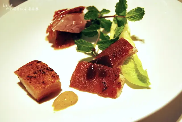 費了很多時間做的前菜,有烤乳豬、烤鴨、冰火燒肉,烤乳豬皮脆的讓人驚艷!帶點冰涼的口感,燒肉肥嫩適中,帶點油花!烤鴨的肉質真的沒話說,帶點自然的甜味與肉汁!