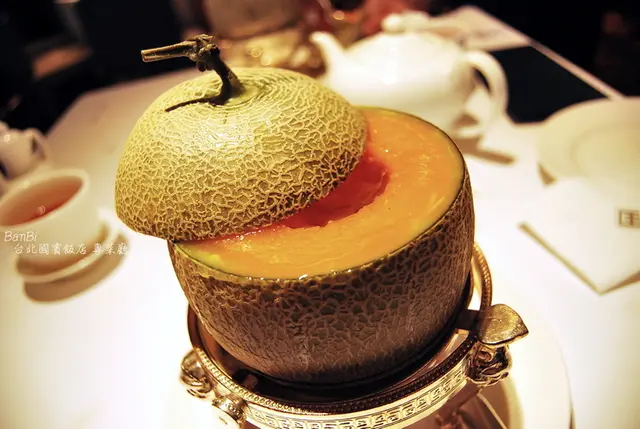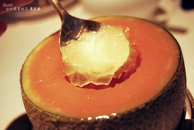 將哈密瓜挖洞,放入白木耳與糖水,在去蒸