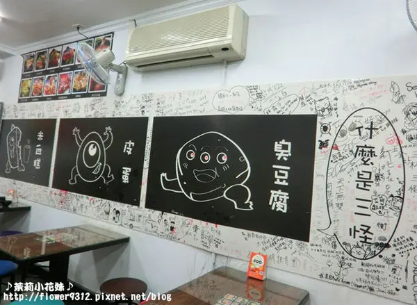 在牆上就有說明對外國人是那三怪食物!就是"臭豆腐"、"皮蛋"、"米血糕"這三樣喔~這三樣是外國人覺得台灣最奇怪、特別的食物呢!