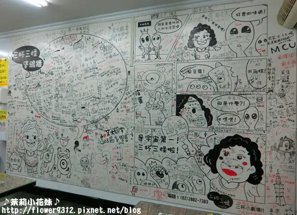 另一邊牆是可愛的小小店家漫畫,用可愛的方式呈現出來~上面也有很多店家的留言呢~