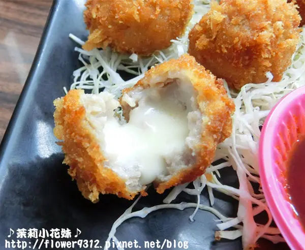 外面是用肉所包的,吃起來很香,裡面的起司真的咬下去會流出來呢!((朋友在吃時,要小心,不要被熱熱的起司所燙到喔~