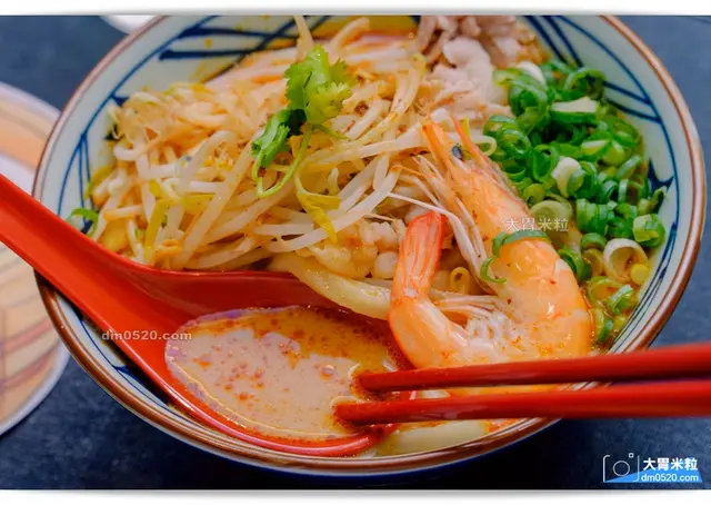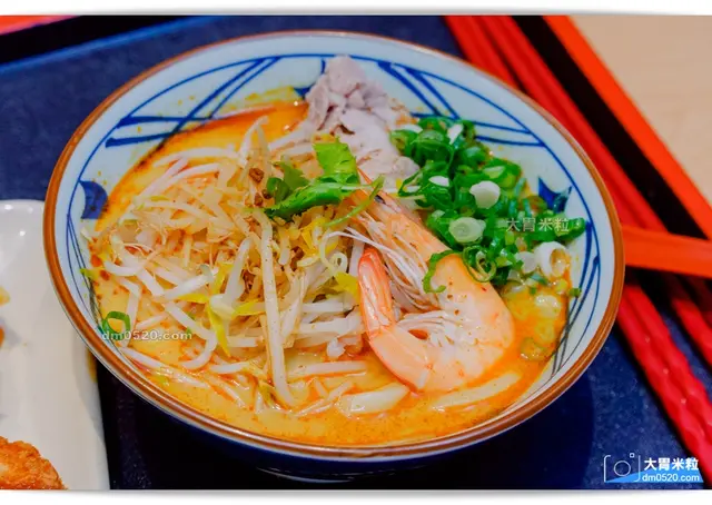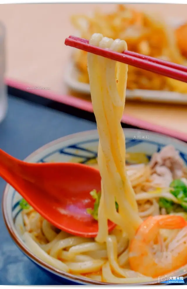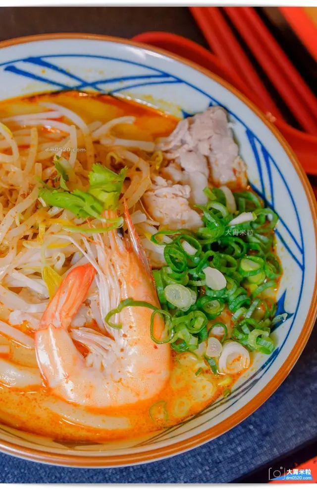 夏季限定南洋風味!丸龜製麵松菸誠品店,海鮮叻沙烏龍麵,蝦醬咖哩湯頭搭配手工烏龍麵,鹹鮮滿點!丸龜製麵