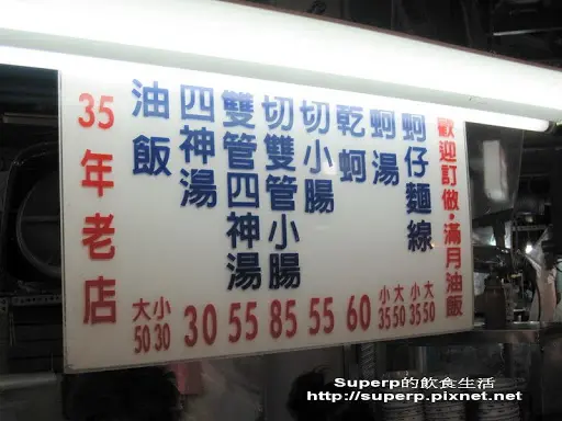 菜單一覽。他們家的油飯也很有名,但我今天沒有吃油飯的FU,所以點了切雙管小腸和乾蚵。