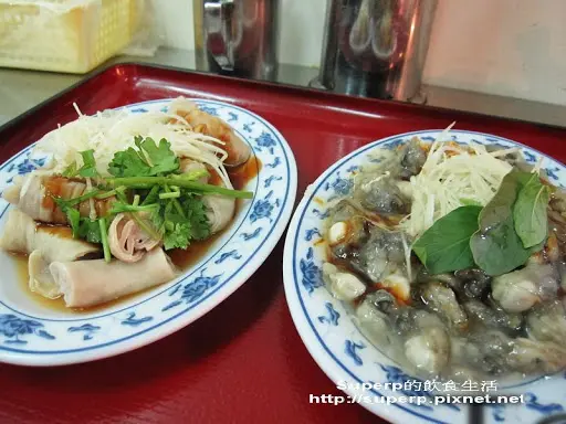 所以才變成雙管。之後淋上醬油膏和蒜泥,灑上薑絲,不過和乾蚵不同的是他們還家了香菜)