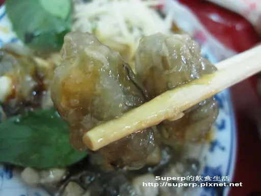 乾蚵近拍(軟嫩鮮美,蚵仔燙的恰到好處,跟醬料和配料一起吃更好吃,而且份量也不小氣,讚阿)