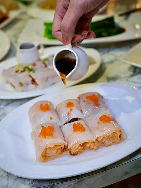 中間還夾著以蝦、馬蹄、魚卵製成的內餡,
