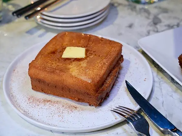 熱呼呼的法式吐司,上層灑滿了巧克力粉,