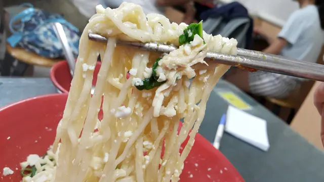 麵店簡易招牌 首次前往點選了節目激推的雞蓉蛋拌麵與極品辣乾麵
