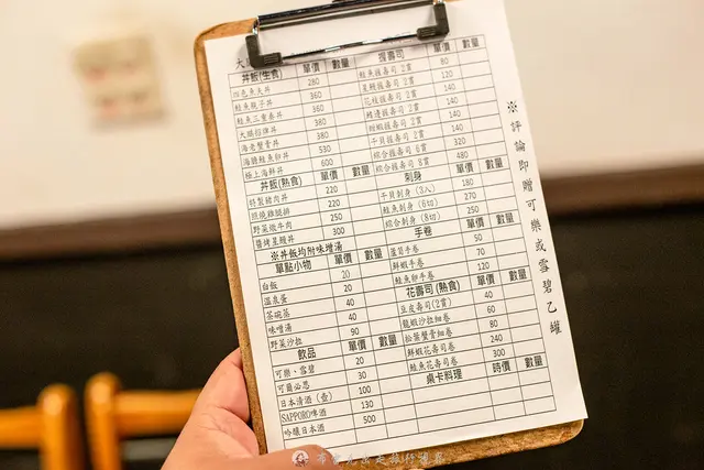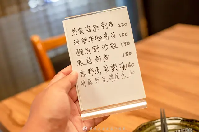大鵬壽司菜單主要就提供多款生魚片丼飯為主,價格看起來也不會太貴,從280元到600元不等,另外還有熟食丼飯跟握壽司等等,除了原本在大鵬壽司菜單看到的料理之外,像這種日式料理一定還有一些隱藏版的,所以在桌上還有黑板都是有當季新鮮的魚獲做的料理,感覺也是不能錯過。