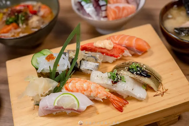螢烏賊吃起來鮮度很夠,口感也很Q,黑鮪魚有炙燒過吃起來肉質超棒的,鮭魚現在大家都知道就只有貴,要吃到油脂不錯又好吃的鮭魚價格都比較貴一些,《大鵬壽司》的品質真的很棒,入口有化開感覺,生食級干貝口感真的很棒,很嫩也很鮮,再來醋飯也沒有亂煮,吃起來不會太乾,味道也是剛剛好。