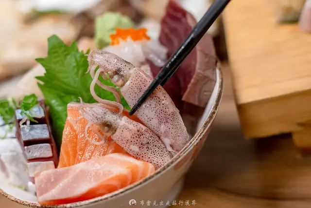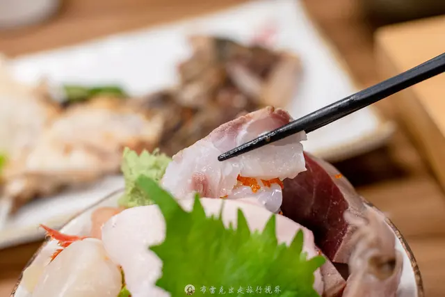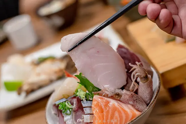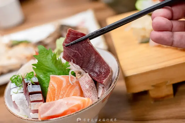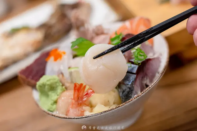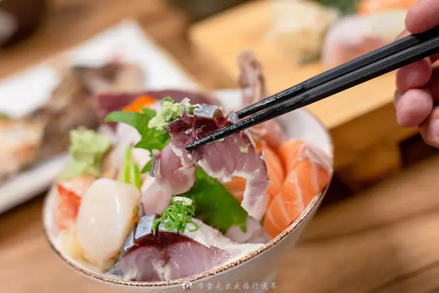 《大鵬壽司》生魚片丼最便宜是280元,價格真的也不會太貴,但大部份來的都會直上招牌丼,哈哈看到招牌不點好像有一點奇怪,大鵬招牌丼反正就是由師傅自己搭配新鮮魚貨,裡面有鮭魚、黑鮪魚、油魚、魚卵、鮸魚、生食級干貝與海鱺等等快十多種魚獲,整個超多的,大鵬招牌丼主要是看每天進貨狀況,內容物都不會一樣,但豐富度都會差不多,這樣子價位不到400元真的很爽快。