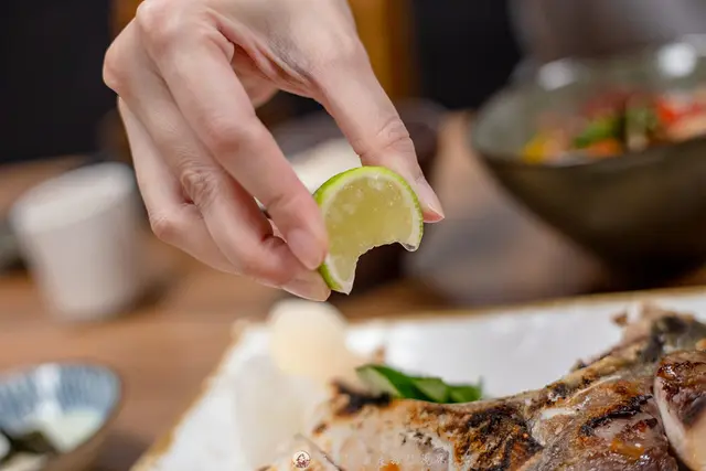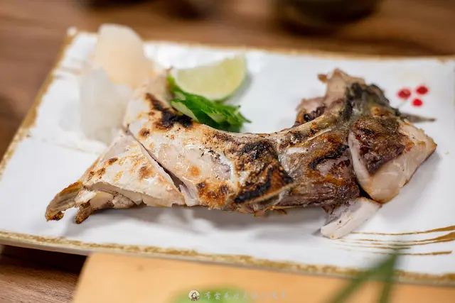 有一些當季才有的魚種會寫在黑板上面,有些做鹽烤有些做醬燒,因為是限量的賣完就沒有了,反而讓人更想要點,日本青甘就是鰤魚,上面是寫時價,但記得好像不到三百元,反正就是時價想點的就先問問看,青甘下巴本身還蠻有肉的,吃起來肉質帶有一點油度,然後還蠻細緻的,是還蠻不錯吃的,但覺得應該可以沾一點胡椒鹽,味道會更香。