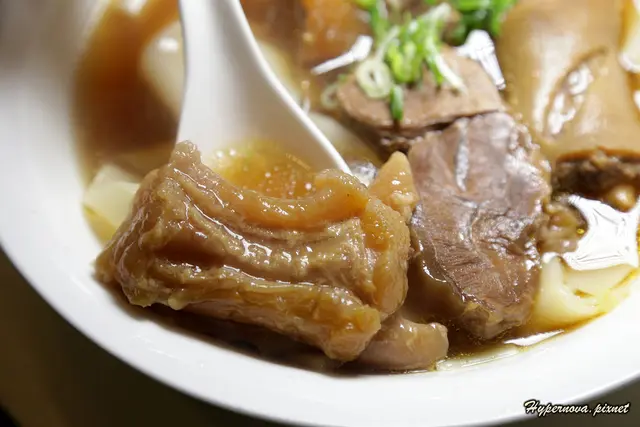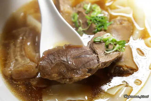 牛腱肉超厚實,遠比其他牛肉麵厚出三倍!!!肉質卻意外的軟嫩不柴讓人驚訝!