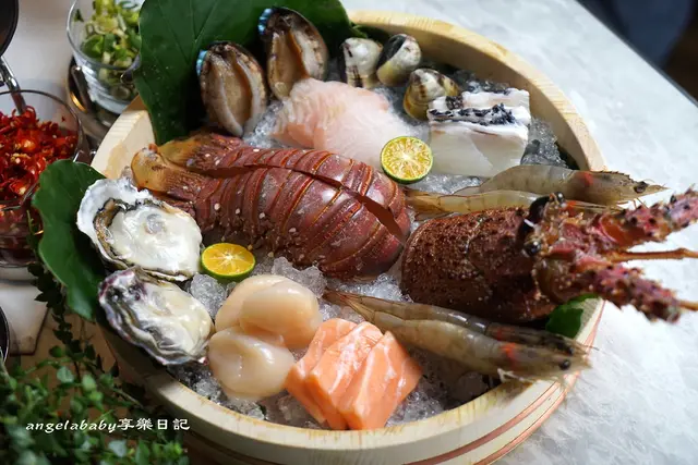 波士頓龍蝦、活9孔鮑、廣島生蠔、北海道干貝、龍膽石斑魚、鯛魚、鮭魚、金目鱸魚