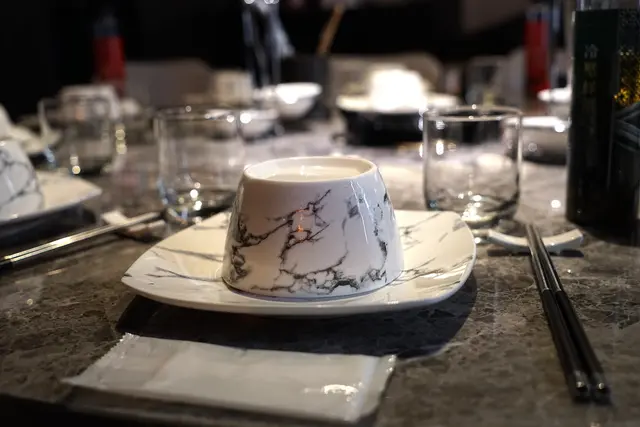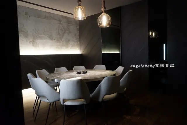 包廂內的成穩大理石桌、使用的餐盤器皿也是同系列的流行與講究