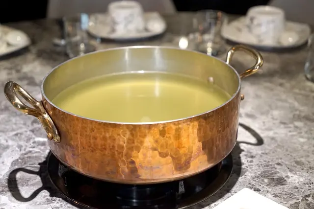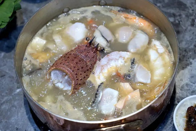 高湯在川燙過和牛、蔬菜以及海鮮後湯頭變得很鮮美