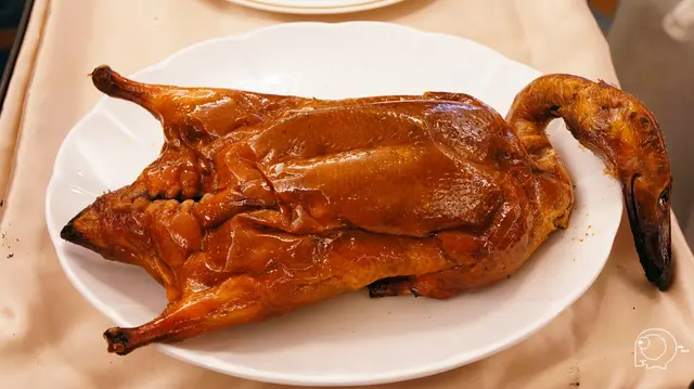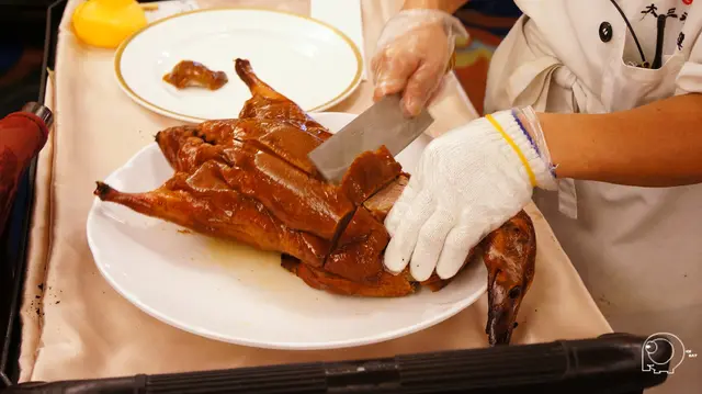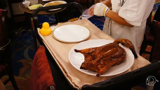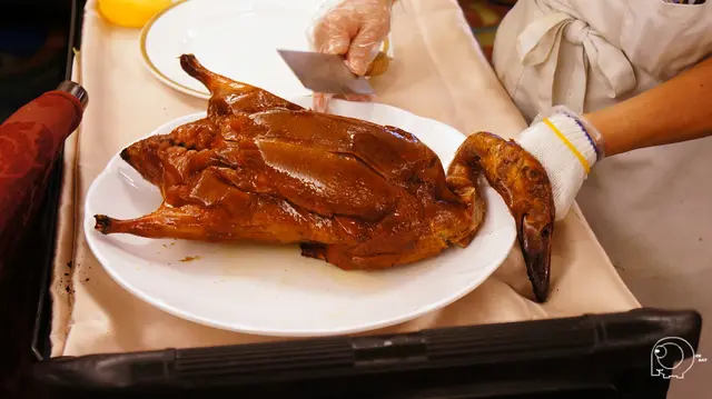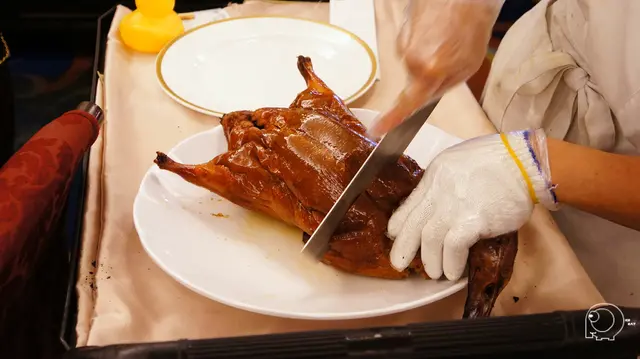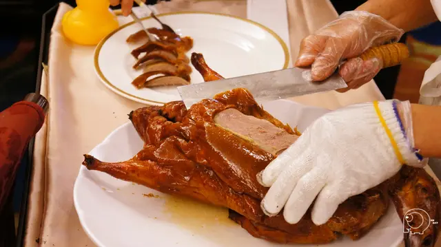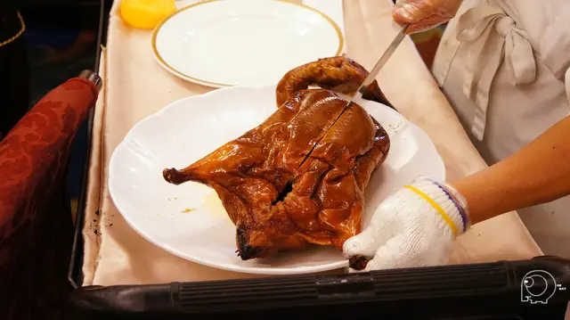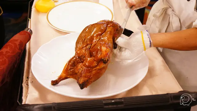 這時侯師傅推著萬眾矚目烤鴨出場了