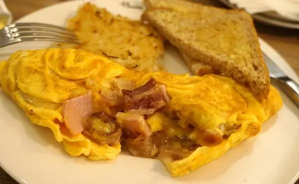 蛋捲裡面包裹的豐富的培根,火腿,香腸,洋蔥,綜合起司,每口都是滿滿的料,起司的鹹香很夠味,蛋很柔軟又嫩