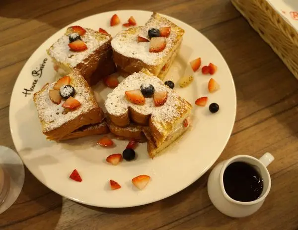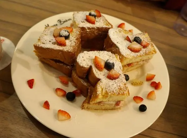甜度上沒有很甜,加入糖漿味道更不錯,草莓藍莓酸甜滋味,跟法式吐司結合的恰當好處,吐司間還有圖奶油乳酪,較不顯著