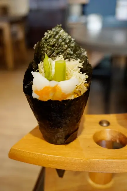 前面剛吃完海膽手捲,胃口都被養刁了,這鮮蝦手捲就顯得中規中矩