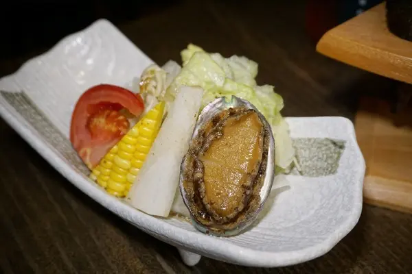 套餐裡頭的鮑魚沙拉,小鮑魚口感嫩中帶點Q