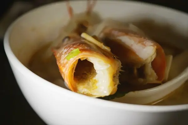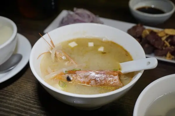 御膳套餐的甜蝦頭味噌湯