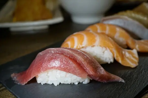 肉質細緻綿密的鮪魚,雖然不是走想鮭魚肚那樣鮮甜油脂豐厚的路線,不過淡雅的 滋味也是頗受歡迎,但我還是偏愛油脂豐富甜味十足的鮭魚和比目魚緣側