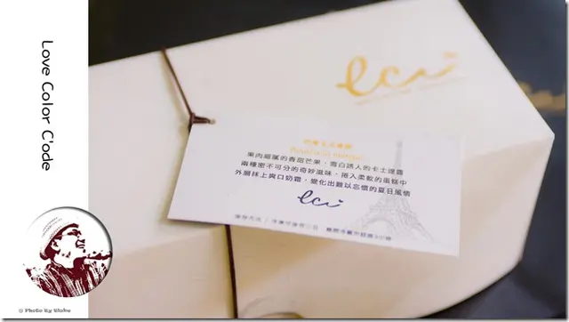 白色的盒裝外面一樣也是有燙金的Logo,一樣也是有個浮水印的Logo,盒子上的透明貼紙也是有Logo,一整個非常有整體設計。上面的小卡寫著「果肉細膩的香甜芒果,雪白誘人的卡士達醬,兩種密不可分的奇妙滋味,捲入柔軟的蛋糕中,外層爽抹上爽口奶霜,變化出難以忘懷的夏日風情。」還沒吃到芒果卡士達捲,就開始想像它的味道了。