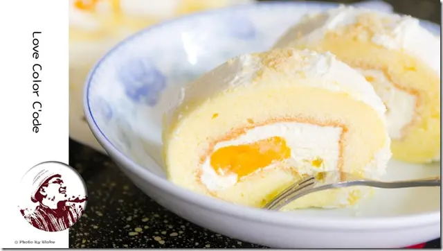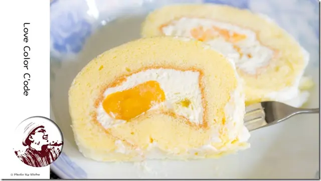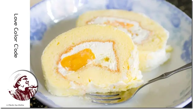 每一口都有一種甜蜜感,一種微微的感覺,一塊吃完之後,完完全全沒有膩的感覺,外面一些用奶油當內餡的蛋糕捲,吃多了總覺得會膩,芒果卡士達捲的卡士達醬有充份的拌勻後,反而更清爽。但是要注一下,因為戚風蛋糕跟卡士達醬的黏著性較小,可能叉子一下去之後,可能就分屍。