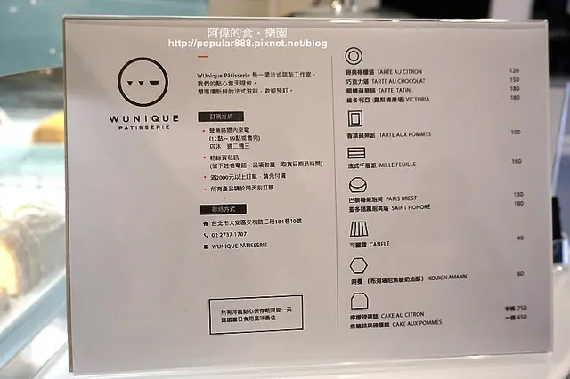 Wunique Pâtisserie 無二烘焙地址:台北市大安區安和路二段184巷10號(近信義路口,捷運文湖線六張犁站步行約6分鐘)