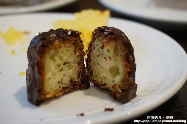 可麗露非常迷你,外皮有著焦糖香脆,但吃不到內裡該有的濕軟,可能因為太小的緣故吧?