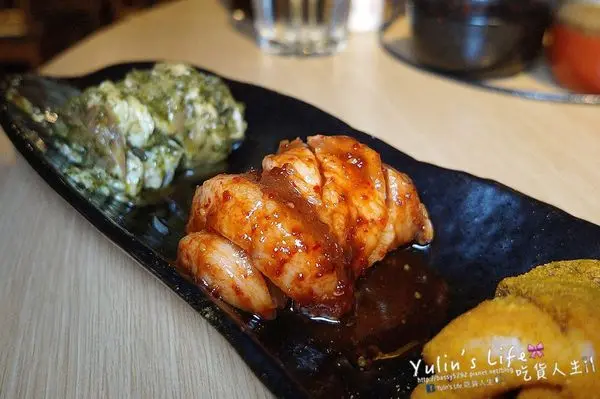 本身肉沒有經過任何調味,卻沒擾人的豬味,烤的非常鮮嫩多汁,沾點店家的醬汁都很不錯~