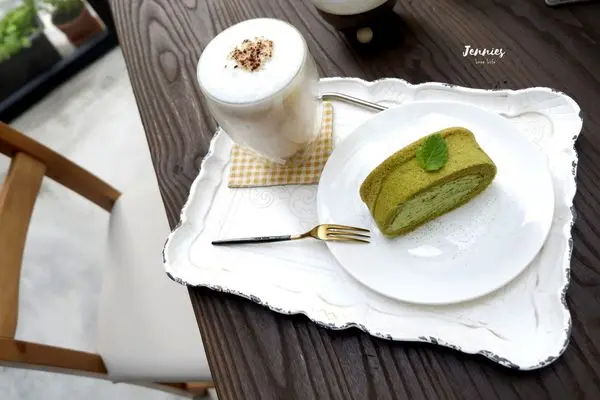 我們今天點了黑糖拿鐵及冰鮮奶茶|每日手作生乳捲:抹茶及水果各一份