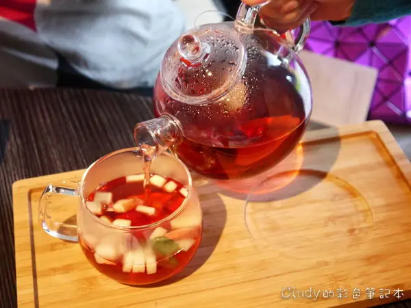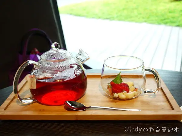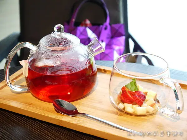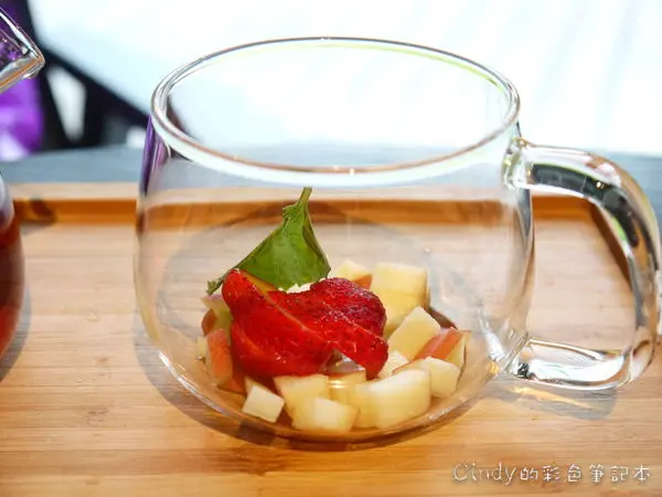 杯子裡也放了蘋果丁及草莓 在品茶時更加添了自然水果的香氣