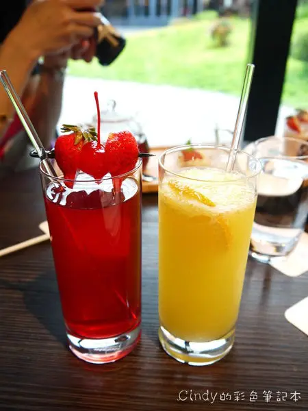 小美女安安單點的飲料 現搾的柳澄汁上頭有好多的柳澄果粒與纖微