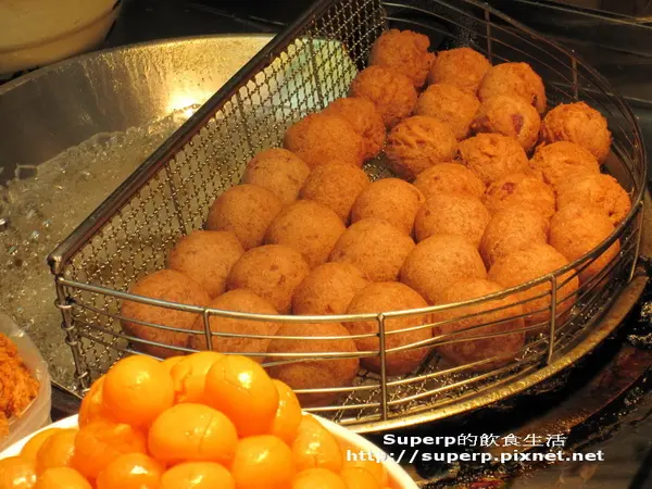 記得電視介紹是說先把大甲芋頭煮熟壓成芋泥,包入鹹蛋黃和肉鬆搓成球狀,然後炸一下定型即可
