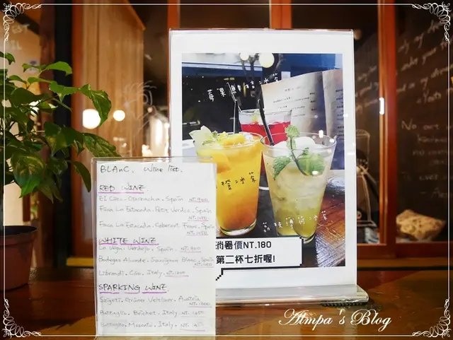 門口就有酒單,可供參考;也可以喝個微酒精的輕飲料或冰茶,小酌微醺的感覺最美~
