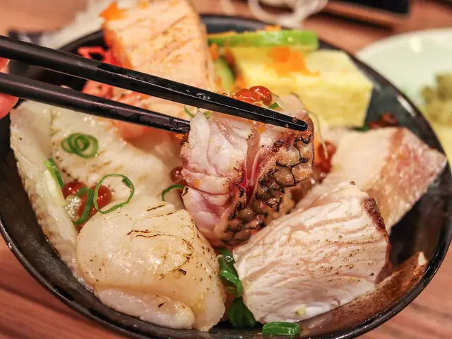 我喜歡吃經過一點炙燒後的生魚片,口感不會那麼快膩,也多了一個香氣,也因為魚料幾乎都炙燒過,所以這晚丼飯吃起來沒有那麼冷冰冰,半冷半熱溫溫的感覺。焰燒海鮮丼同樣的分量不算大,但魚料種類豐富,新鮮度與甜味有夠水準,我覺得也算是性價比高的一款。