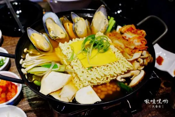 ▼四人套餐內含有韓式部隊鍋,當天我們選擇加價$150,升級為淡菜起司年糕鍋。