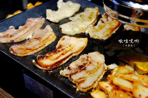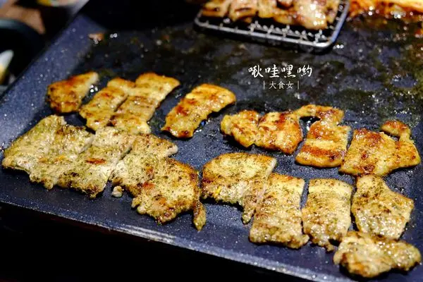 看著豬肉在烤盤上烤得滋滋作響,著實讓我們興奮不已!XD