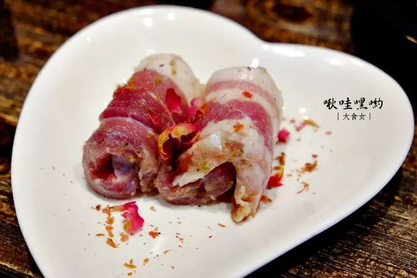 以玫瑰花瓣下去醃漬的豬肉,吃起來玫瑰香氣非常的重,友人even覺得像不小心吃到了玫瑰口味的護手霜...@@