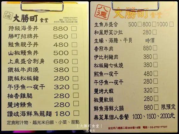 ▼大勝町食堂完整菜單MENU