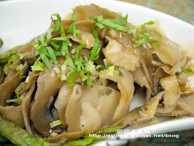 椒鹽四季豆和玉蘭筍雙拼$90(四季豆還不錯,比較特別的是玉蘭筍,我壓根沒聽過這種筍子。如果不跟我說這是蔬菜,我看這樣子會猜這是某種類似牛肚的內臟類小菜。吃起來口感爽脆,頗特別的,沒吃過可以試試看)