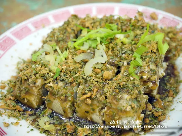 涼拌臭豆腐$35(這道相當的特別,第一次吃到臭豆腐用涼拌的。聞起來超臭,但入口後就非常可口。外頭撒了一堆類似海苔酥的東西,淋上醬油,跟香菜一起吃,滋味極為豐富。口感真的類似豆花,一入口就化掉了。不過這個真的感覺不是每個人都可以接受的味道,比較hardcore一點,不過臭豆腐狂熱者會超愛這道。我也是大推!)