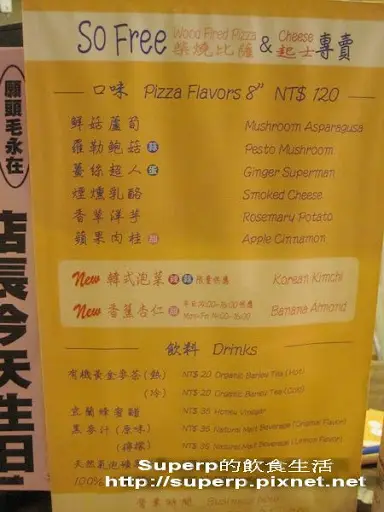 菜單(和一般的披薩店家口味相當的不同。可以看到所有的口味都是蔬食,