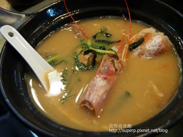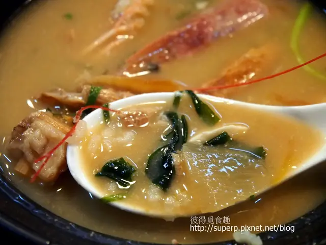 這湯內一堆蝦頭跟魚肉塊,海帶芽,當然不可能會不好喝。