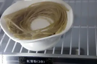 口感上非常像是珍珠奶茶的珍珠(最早用紅番薯製作後來用木薯粉取代)